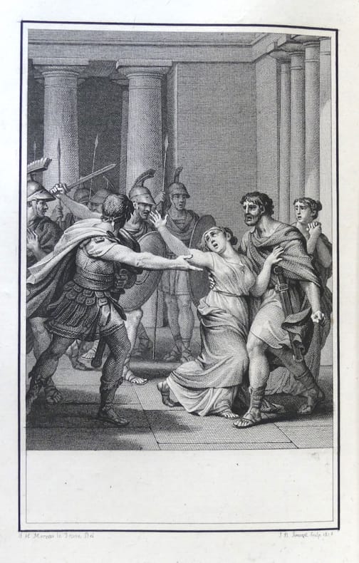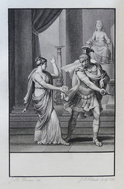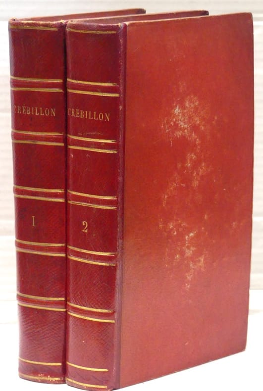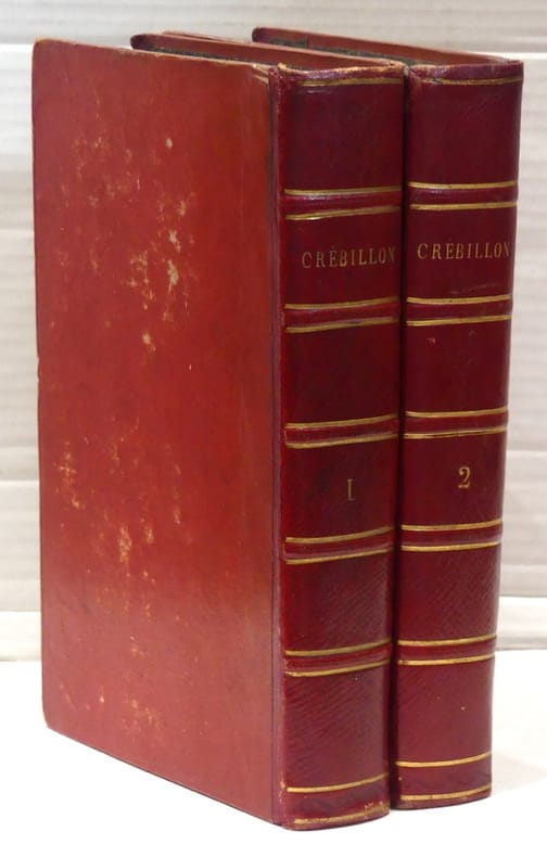 "L’une des plus belles éditions existantes" (Quérard).Elle comprend dans le tome 1, Idoménée (1705), Atrée et Thyeste (1707), Électre (1708), Rhadamiste et Zénobie (1711), Xerxès (1714), et dans le tome deux, Sémiramis (1717), Pyrhus (1726), Catilina (1749), Le Triumvirat ou la mort de Cicéron (1754) ainsi que des discours académiques. Elle est illustrée d'un portrait de l’auteur par Saint Aubin et de neuf compositions gravées sur cuivre d'après les dessins de Moreau le Jeune. Jean-Michel Moreau dit Moreau le Jeune (Paris, 1741-Paris, 1814), élève de Le Lorrain, fut successivement dessinateur des menus plaisirs du roi, en 1790 puis dessinateur du Cabinet du Roi. Nommé académicien en 1789, il exposa au salon de 1781 à 1810. "L’œuvre de Moreau est considérable et comprend plus de deux mille dessins, dont la plupart furent gravés. Son carnet de dessins, qu’il tint à jour à partir de 1763, est intégralement conservé au Louvre" (Bénézit).Un des quelques exemplaires sur grand papier vélin avec les figures avant la lettre (Brunet).Prosper Jolyot de Crébillon, dit Crébillon père (Dijon, 1674-Paris, 1762) se positionna comme un rival de Voltaire. Nommé en 1731 à l'Académie française, il devint, en 1733, censeur royal de librairie pour les belles-lettres et l’histoire, puis en 1735, censeur des spectacles. Se démarquant de Racine, il renouvela la tragédie en lui donnant une tonalité dramatique et sanglante. À sa mort les comédiens de Paris organisèrent un service funèbre auquel assistèrent les membres de l’Académie et un grand nombre d’acteurs et d’actrices, ce qui occasionna un scandale dans le monde religieux.Très bon exemplaire en reliure de l'époque.Brunet, II, col. 412. Vicaire, II, col. 1068. Quérard, La France littéraire, II, p. 333. Bénézit, VII, p. 526.