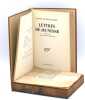 Préface de Renée de Saussine volume in-8, 180x120, relié demi cuir à coins, nom au stylo du précédent propriétaire, 150pp, très bel état. Paris, Gallimard, achevé d'imprimé le 24 juillet 1953 ( Mention de 50e édition) De 1923 à 1931, Antoine de Saint-Exupéry écrit de nombreuses lettres particulièrement touchantes à Renée de Saussine dit « Rinette ». De trois ans son aînée, Renée de Saussine lui est présentée par son frère Bertrand, condisciple d’Antoine au lycée Saint-Louis. Une amitié affectueuse lie Antoine à Renée et traverse les années. Parfois, lorsqu’il se trouve loin d’elle, il lui téléphone. Ne la trouvant que rarement, il lui écrit de nombreuses lettres. Vingt- cinq lettres d’Antoine de Saint-Exupéry à Renée de Saussine ont été publiées dès 1953 sous différents titres : « Lettres à l’amie inventée », « Lettres de jeunesse », « Lettres de jeunesse à l’amie inventée ». Le jeune homme souffre de solitude amoureuse après la rupture de ses fiançailles avec Louise de Vilmorin. Il croit pouvoir trouver l’affection qu’il recherche auprès de Rinette, qui fait semblant de l’ignorer. Il trouve en Rinette, une confidente à la fois proche et inaccessible. Les déclarations voilées alternent avec des reproches moins dissimulés concernant la vie mondaine de Renée qui ne trouve pas le temps de lui répondre. Des dithyrambes littéraires destinées à séduire la jeune fille, apparemment trop frivole, succèdent à des confessions concernant les déceptions d’une vie trop morne avant de déboucher sur des projets d’avenir exaltants. Dans une lettre de 1926, il confie: « J’ai grand besoin d’une amitié à qui confier les petites choses qui m’arrivent. Avec qui partager. Je ne sais pas pourquoi je vous choisis. Vous êtes si étrangère. (…) Je m’écris peut-être à moi-même » Antoine de Saint-Exupéry et Renée de Saussine partagent le même intérêt pour la littérature et les spectacles. Dans sa première lettre, Antoine donne des conseils à Rinette a propos du conte qu’elle lui a confié et cite Dostoïevski. Dans une autre lettre, il s’exprime sur sa conception de la littérature et s’offusque que l’on compare Luigi Pirandello et Henrick Ibsen. Ses premières lettres sont postées des villes qu’il prospecte depuis qu’il est représentant des camions Saurer. Il décrit ses voyages en voiture et les mœurs de province. Il aime raconter des anecdotes comme celle de son chapeau perdu sur un pont à Argenton, et de la discussion avec la jeune modiste du magasin qui lui en vend un nouveau. Il reproche parfois à son amie sa mondanité et il regrette de ne pas être « un beau gigolo avec une belle cravate et une magnifique collection de disques de gramophone ». Il la sens beaucoup plus proche quand, seul, il la « fabrique » à son gré : « C’est peut-être parce que je vous invente que je tiens tellement à vous. » Plus tard, il rejoint Toulouse où est basée la compagnie Latécoère qui vient de l’engager. Il raconte sa vie de pilote et ses voyages en Espagne, au Maroc et au Sénégal. Il décrit ses sensations au moment où son avion en panne est sur le point de s’écraser. Loin de Paris, ses amis lui manquent. Il s’ennuie d’elle et des soirées passées en sa compagnie. Hélas, elle ne répond que rarement à ses lettres et ce silence le fait souffrir. Muté à Buenos où il ne se plait guère, il se réjouit de recevoir son mot qui lui remémore « mille choses adorables et oubliées ». Directeur d’exploitation de l’Aeroposta argentina, filiale de l’Aéropostale, il détaille son travail et ses responsabilités, décrit son appartement et son quotidien. Sa dernière lettre date de 1931 et est écrite d’Agay où demeure sa sœur Gabrielle entourée de sa famille. Elle correspond à la période de son mariage avec Consuelo mais il ne fait aucunement mention de cet événement à Rinette. ref/240