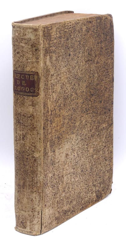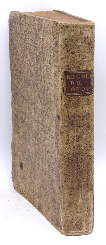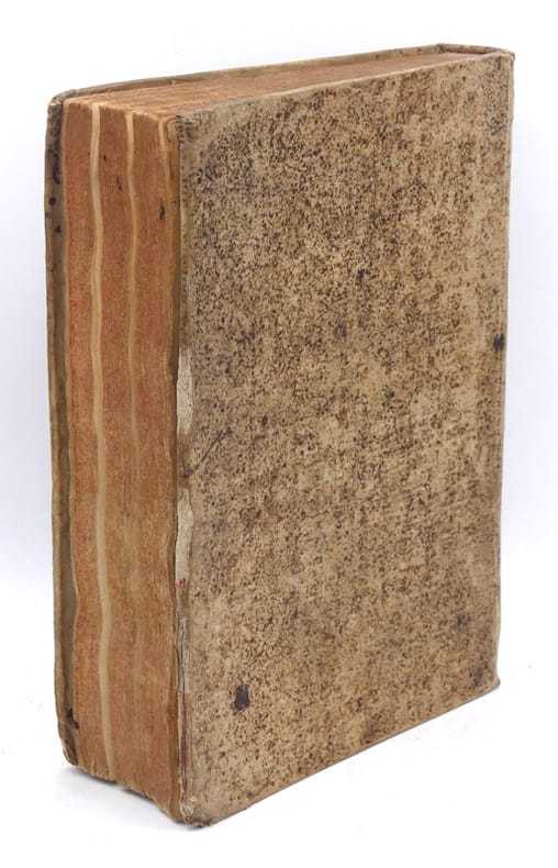 Sens, imprimerie du Roy Pierre Hardouin Tarbé, 1777. In-8 (222 x 168 mm), 526 pp., 12 ff. non chiffrées. Vélin moucheté de marron, pièce de titre en maroquin marron, tranches mouchetées de rouge, fortes usures à deux coins et une coupe, vélin fendu sur 10 cm au mors supérieur, taches d’encre dans la marge p. 234 et pp. 489 à 494 avec petits manques de papier (reliure de l’époque).