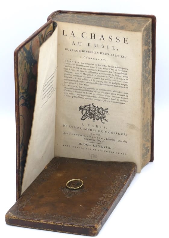 Des recherches sur les armes de trait usitées pour la chasse avant l’invention des armes à feu (arc et arbalète), fabrication des canons de fusil, marques des cannotiers de Paris, les connaissances pour chasser utilement les espèces de gibier, la manière de dresser les chiens de plaine, les ruses pour approcher certains oiseaux. Le nom de l’auteur se lit dans l’approbation et le privilège. Ce livre est non seulement le premier ouvrage français consacré exclusivement au fusil de chasse et à la chasse à tir, mais c’est aussi le premier traité de chasse qui consacre une étude importante à la “Sauvagine”. Thiebaud col. 621.