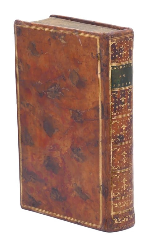 Vignette au titre, deux têtes-de-chapitre gravées sur bois et 9 planches hors texte (huit in fine) gravées sur cuivre : Marques des Cannoniers de Paris (en regard de la p. 82) ; deux plans : (Palomiére de Lannes, à 6 lieues de Pau, dans la Vallée de Baretons ; et Plan géométral de la Pantiere d'Igon, près Nay, à 4 lieues de Pau) ; et six planches d'arbalètes (dont une dépliante). "Édition originale complète. Le nom de l'auteur se lit dans l'approbation et le privilège. [les éditions précédentes parues en 1781 et 1782 comptaient 104 ou 122 pp. et n'étaient pas illustrées.] Ce livre est non seulement le premier ouvrage français consacré exclusivement au fusil de chasse et à la chasse à tir, mais c'est aussi le premier traité de chasse qui consacre une étude importante à la Sauvagine. La section IV "De la Chasse des oiseaux aquatiques" occupe les pages 502 à 582." Thiébaud Un "Supplément au Traité de la Chasse au fusil" paraîtra en 1791 (103 pp.-4 ff.). Peu fréquent. Thiébaud, Bibliographie des ouvrages français sur la chasse, col. 621-622.