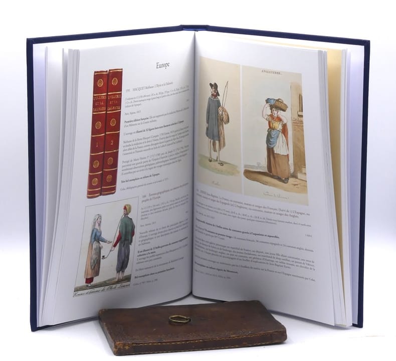 Exemplaire de luxe, relié en toile, de la première partie de la collection Kilian Fritsch autour du costume et de la mode.Ce catalogue contient près de 380 descriptions d'ouvrages et 500 illustrations en couleurs.Cet ouvrage a été tiré à 1500 exemplaires sur papier couché satin 150 grammes, dont 250 exemplaires de luxe furent reliés en toile.Parfait exemplaire.