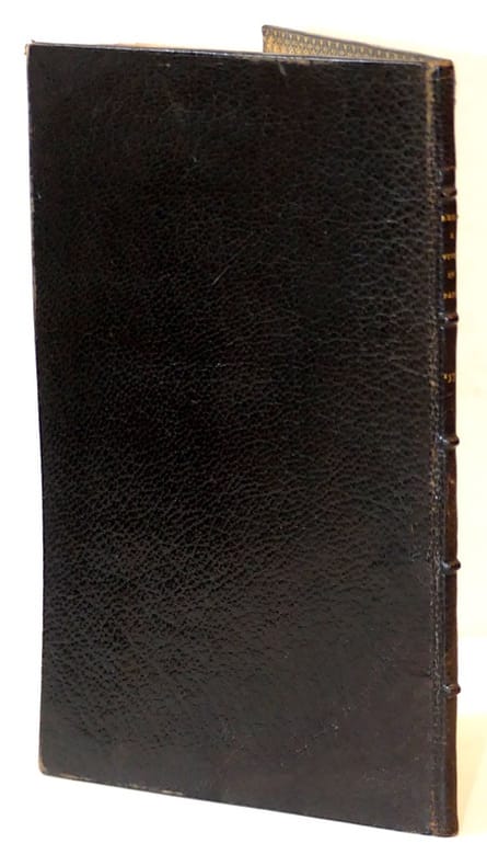 Lyon, Benoît Rigaud, 1576. In-12 (152 x 95 mm), 16 pp. Maroquin brun, dos à nerfs, filets sur les coupes, roulette intérieure, tranches dorées, volume légèrement gauchi, mors fendu sur quelques centimètres, quelques frottements, petite réparation de papier au premier et dernier feuillet (Petit-Simier).