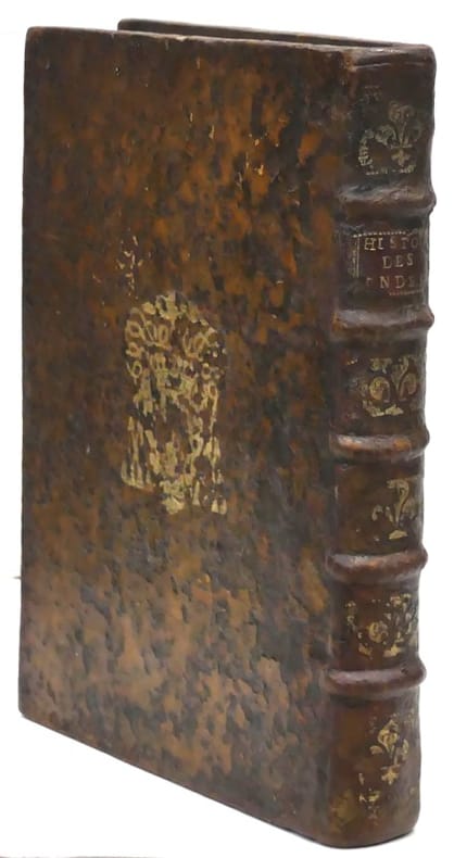Edition originale qui fut partagée entre plusieurs libraires. Elle est illustrée de 2 cartes hors-texte dépliantes. Elles représentent les Indes anciennes à l'époque d'Alexandre le Grand et les Indes Orientales avec un plan de Pondichéry. Principaux sujets abordés : Commerce des anciens aux Indes. - Mœurs des Indiens. - Voyages aux Indes. - Etablissement et commerce des Portugais. - Commerce des Français, Anglais, Hollandais, Vénitiens. Elégant exemplaire en veau blond de l'époque. Il provient de la bibliothèque de Jean-Baptiste de La Michodière (1689 - 1745) avec son ex-libris gravé. Il fut Conseiller du roi Louis XV et Maître des requêtes (cf. Olivier, Hermal et Roton, Reliures armoriées françaises, 2020, planche 513, fer n° 1). Bibliothèque de M. Chadenat, 2903.