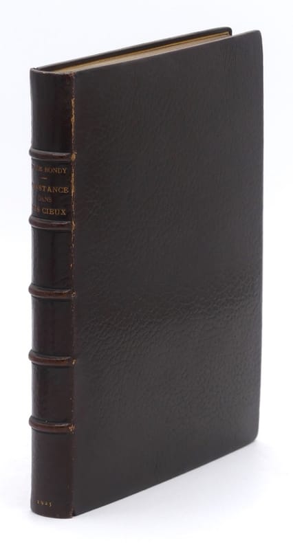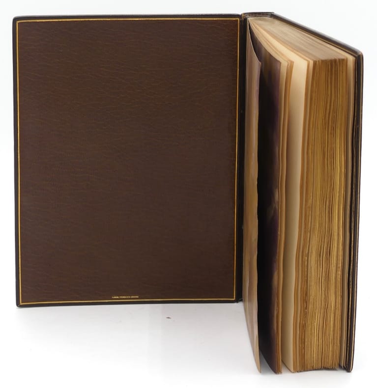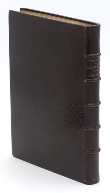 Paris, La Lampe d'Argile, 1925. In-8 (160x213 mm). Maroquin chocolat janséniste, dos à nerf, auteur, date et titre dorés, filet sur les coupes et les coiffes, tranches dorées, doublure de maroquin marron glacé avec filet d'encadrement doré, garde de papier de couleur marbré, dos et couvertures conservés (Dubois d'Enghien-Dooms).