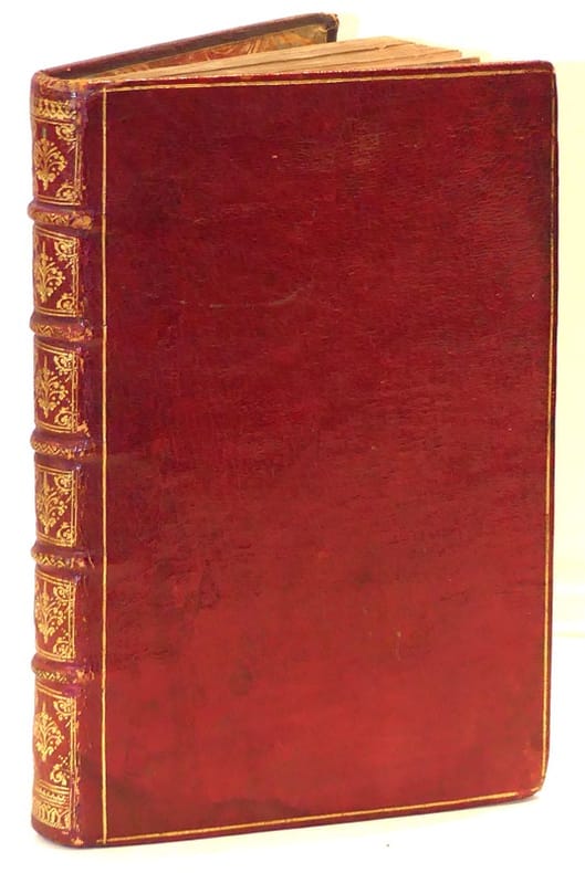 Paris, Denys Thierry, 1670. In-12 (115 x 179 mm), 2 ff. n. ch., 100 pp., 7 pp. n. ch. entre les pp. 30 et 31. Maroquin rouge, filet sur les plats, dos à nerfs orné, roulette dorée sur les coupes, tranches dorées, mouillure marginale sur 10 ff., rousseurs (reliure de l'époque).