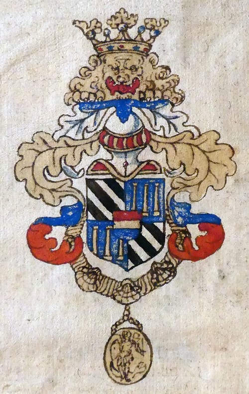 Le monument le plus considérable de la littérature d'art du seizième siècle en France. Mises au jour par Filippo Giunta et publiées par Alde dès le début du seizième siècle, les œuvres du néo-sophiste grec du troisième siècle de notre ère, Philostrate l'Athénien, avaient été traduites et publiées en français dès 1578 par l'archéologue et amateur d'art bourbonnais Blaise de Vigenère. Celui-ci y voyait l'occasion d'enseigner aux artistes l'histoire de l'art et les règles de la composition et, attiré par la symbolique et l'hermétisme, de présenter l'art comme régi par une sorte de panthéisme mythologique. Les Images sont censées décrire soixante-quatre tableaux d'une antique galerie de Naples (dont quelques-uns pourraient avoir réellement existé). Elles sont précédées d'une introduction générale sur l'art de peindre qui reste un des ouvrages importants de l'Antiquité sur ce sujet. Cette série de descriptions de tableaux, ou ekphrasis, fut un prétexte pour l’auteur à la présentation visuelle de récits et héros tirés des plus célèbres textes de l’Antiquité, comme l’épisode de la lutte entre Achille et la rivière Scamandre racontée par Homère au chant 21 de L’Iliade. Blaise de Vigenère a complété les textes antiques par des commentaires sur les différents arts et son livre reflète fidèlement les préoccupations des artistes de la Renaissance. L'éditeur parisien Abel L'Angelier voulut publier ces œuvres bien avant la mort de Vigenère survenue en 1596. Cette première édition chez L'Angelier, posthume, est ornée d'un superbe titre-frontispice par Léonard Gaultier et deux vignettes dans le texte, le tout gravé sur cuivre. Le frontispice représente la création du monde en sept médaillons. Erudit et alchimiste bourbonnais, Blaise de Vigenère (1523, Saint-Pourçain-sur-Sioule-1596, Paris) reçut une éducation classique très poussée. Il fut notamment secrétaire du Duc de Nevers puis secrétaire et astrologue personnel du roi Henri III. Fin connaisseur des langues anciennes, il se consacra principalement à l’écriture et à la traduction d’ouvrages historiques et religieux de l’Antiquité. L'exemplaire de Francois de Jousselin, seigneur de Jupilles. Fils d'Hilaire Jousselin (1540-1603), sergent royal et receveur de la châtellenie de Dissay, François de Jousselin (Vienne, vers 1560-Paris, 1628) était capitaine et enseigne des Cent gentilhommes de la maison de Sa Majesté. Cet exemplaire porte ses armoiries dessinées et peintes à la main en page de garde. Écartelé, aux 1 et 4 d'argent aux trois barres de sable, aux 2 et 3 d'azur aux trois colonnes d'or en pal, avec, sur le tout, l'écusson suivant : tiercé en fasce de gueules, d'or et d'azur. Les armoiries sont entourées du collier de l’ordre de Saint-Michel dont il était membre. Dans un cartouche en dessous, sa mention manuscrite d'appartenance nominative a été occultée. Il aurait été décapité pour fausse monnaie (Lettres de Peiresc). La Bibliothèque Sainte-Geneviève conserve un manuscrit du XVe siècle qui lui appartint, sous la cote Ms. 1687, Statuts de l'Ordre du Croissant, fondé en août 1448. Ex-libris armorié gravé et manuscrit du Comte Pierre Guerrier de Bezance (1737-1793, Clermont-Ferrand). Avocat puis Président de la cour des Aides de Clermont-Ferrand, il fut successivement ordonné Chevalier d’honneur de l’ordre de Malte en 1775 et citoyen d'Avignon en 1786. Graesse, Trésor de livres rares et précieux, V, p. 274. Ruth Webb, “Les Images de Philostrate : entre le regard et la constitution du mythe”, article extrait de Mythe et fiction, dir. Danièle Auger et Charles Delattre, pp. 349-365. Lettres de Peiresc, op. cit., t. I, p. 904-906, Pierre Dupuy à Peiresc, Paris, 6 mars 1628.