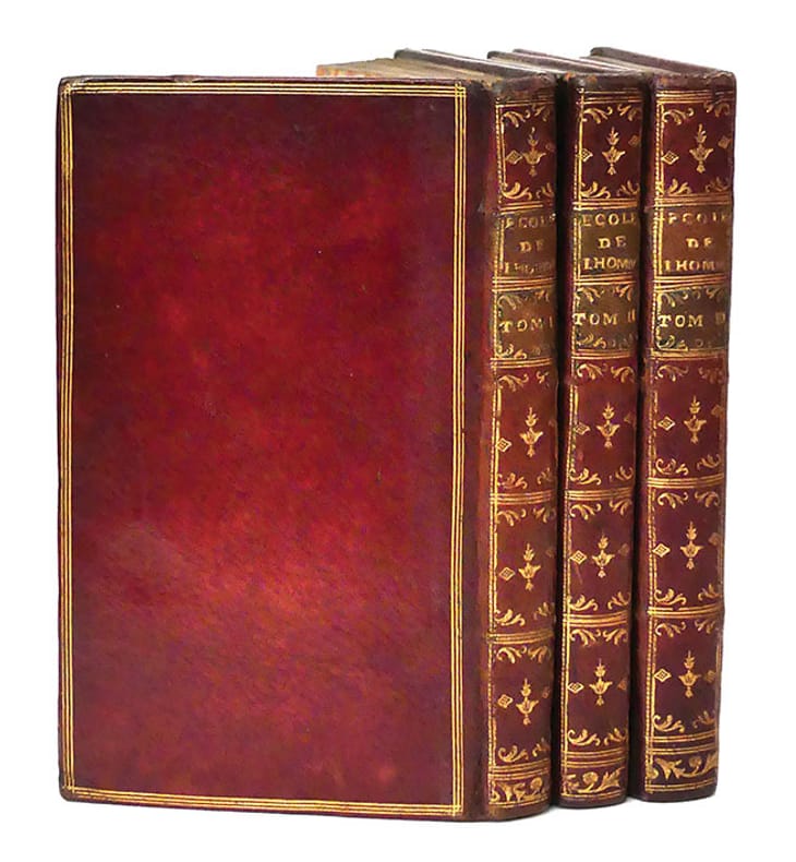 Paris, 1752 ; 3 parties en 1 vol. in-12 de [12] ff., 114 pp. ; [3] ff. 120 pp. ; 148 pp., [4] ff., reliure de l'époque, veau moucheté, filet à froid en encadrement sur les plats, dos à nerfs orné, pièce rouge, tranches rouges.