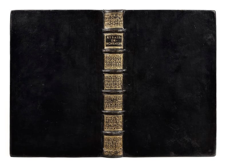 Second tirage de cette très importante édition des Essais donnée par Melle de Gournay, illustrée d'un beau portrait gravé de Montaigne, et dédiée au Cardinal de Richelieu. Ce nouveau tirage corrige nombre d'erreurs qui étaient apparues dans le premier, publié par Toussaint Le Bray et ajoute au titre des armes dans les socles à l'antique. Dans de nombreux passages, cette édition revient au texte de l'édition de 1595, avec quelques inévitables rafraîchissements du vocabulaire. Pour Brunet, "Cette édition, dédiée au cardinal de Richelieu, l'emporte peut-être sur celle de 1595, à cause des pièces qui y sont jointes, et parce qu'elle donne la traduction des citations (...)". Notre exemplaire contient bien les 19 corrections portées à la plume par Mlle de Gournay elle-même, répertoriées par Sayce et Maskell, auxquelles elle fait référence dans sa longue préface : "nous avons pris la peine de corriger la plus part des erreurs avec la plume, & recueillir en un Errata bien exact le reste de celles qui peuvent importer". A titre d'exemple, à la p. 14, soy est corrigé en elle, à la page 18, forte devient haute. C'est un témoignage de l'exigence d'exactitude de celle qui s'était voulue la fidèle dépositaire de l'oeuvre de son père spirituel. Les traductions des citations grecques et latines, placées à la fin de chaque essai, répondent certainement à l'empire croissant du français sanctionné par la création de l'Académie française selon la volonté du Cardinal, quelques mois seulement avant la dédicace de Marie de Gournay. Précieux exemplaire en maroquin du temps. Brunet, Manuel du libraire et de l'amateur de livres, III, 1837. Tchemerzine, Éditions originales et rares XVe-XVIIIe siècles, VIII, 428. Sayce & Maskell, A Descriptive bibliography of Montaigne’s Essais 1580-1700, n°25.