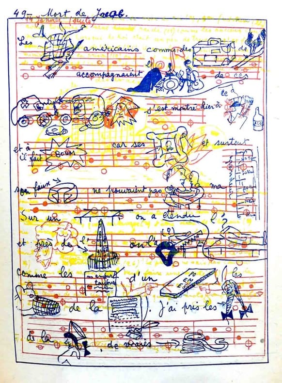 Édition originale, pour laquelle il n’a pas été tiré de grand papier. L’ouvrage comprend le roman de Jean Isidore Isou, un Essai sur la définition, l’évolution et le bouleversement total de la prose et du roman et une «préface-défide l’éditeur-métagraphe» Maurice Lemaître. Il est illustré in fine de 50 planches métagraphiques de Jean Isidore Isou tirées en bleu, rouge et jaune illustrant l’Ancien Testament selon les principes du «roman isouien». De la bibliothèque Pierre Cheymol, avec son ex-libris gravé. Bon exemplaire.