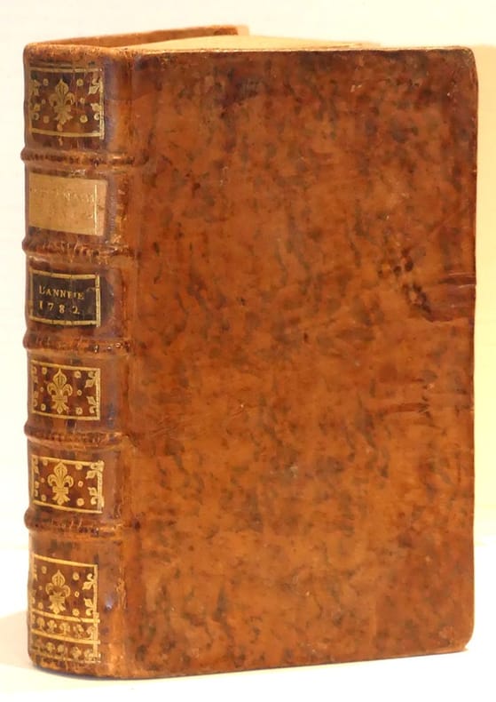 L'annuaire officiel de la Cour au XVIIIe siècle. Cet almanach fut publié de 1700 à 1792 par Laurent d'Houry et ses héritiers successifs. Il fut remplacé par l'Almanach national. "D'une sorte de calendrier qu'il était à l'origine, se contentant d'un "discours général sur les changements de l'air et autres événements de l'année" et de quelques prédictions politiques plus ou moins banales, l'Almanach devint un véritable annuaire officiel, n'ayant plus que faire des "discours" et des "prédictions" (Grand-Carteret). En plus de l'indispensable calendrier, on trouve notamment dans cet ouvrage les dates de naissance et d'alliances, la liste des membres du clergé, des responsables des Maisons royales, des officiers de l'armée, des acteurs de la vie politique (parlementaires, conseillers d'État, fermiers généraux…), des membres des ordres de chevalerie ; la liste des bibliothèques, des membres des Académies, des chirurgiens et pharmaciens royaux, des foires les plus importantes ; les heures de départ des postes pour le courrier et le transport de personnes… L'ouvrage s'achève par une table des matières. Bon exemplaire en veau de l'époque.