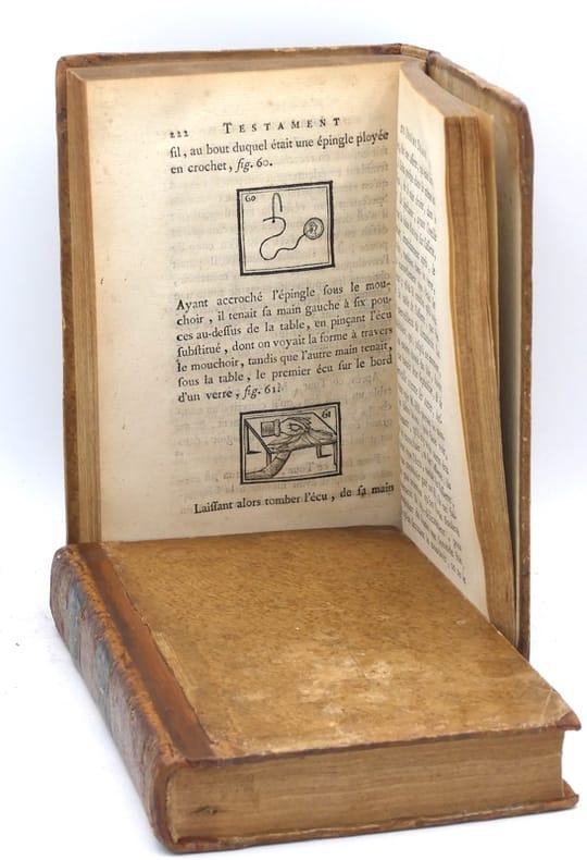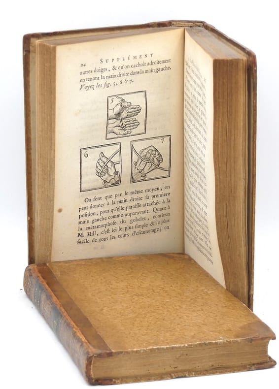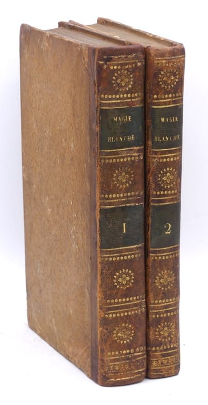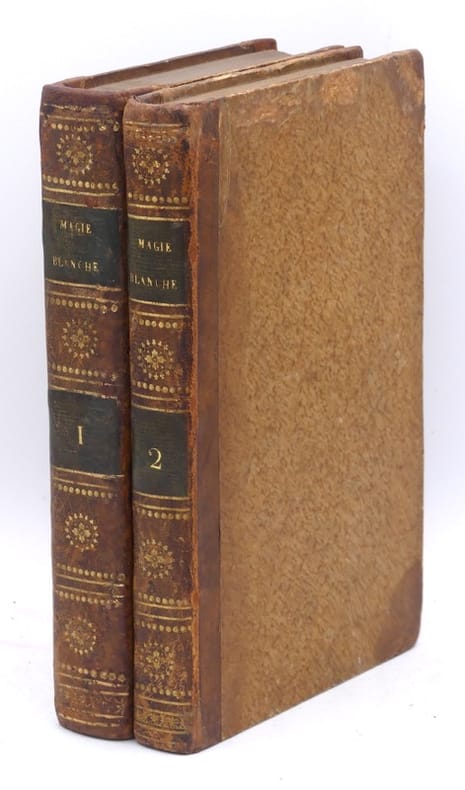 Editions originales de ce classique de la prestidigitation avec son Supplément paru l'année suivante, illustrées de 2 frontispices, auxquels on joint un volume supplémentaire, également en édition originale, constituant le tome 2 de l’ouvrage, illustré de 69 vignettes in-texte. Juriste et mathématicien, secrétaire interprète à la Cour d'Angleterre, Henri Decremps (1746-1826) publia son ouvrage afin de démasquer charlatans et escrocs. Nourrissant un intérêt certain pour les sciences occultes et s'étant découvert très tôt le talent de déchiffrer les langages codés, il se voulait avant tout un esprit positif refusant le mélange des genres que pratiquaient les faiseurs de prodiges à la mode dans la société d'alors. Il s’attaque en particulier au plus fameux des pseudo-mages et magiciens, à la veille de la Révolution, Joseph Pinetti, prétendu physicien et magicien de la cour de Louis XVI qui publiait la même année 1784 ses Amusements physiques. Decremps le premier démystifia l'escamoteur par l'explication de toutes ses expériences (tours de cartes, gobelets et gibecières, etc.) et dressa la liste des techniques de tricherie, comme les faux mélanges, les sauts de coupe, la donne en second, etc. Bon exemplaire en reliure du temps. Caillet I, 2861 et 2862. Fechner, Bibliographie de la Prestidigitation Française, p. 152.