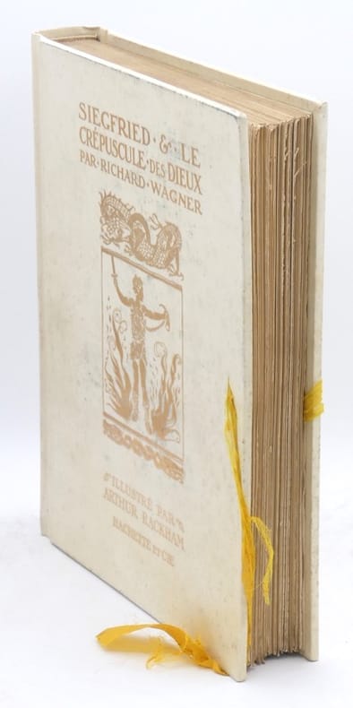 Superbe exemplaire du rarissime tirage de luxe sur Japon dans sa reliure éditeur en vélin doré (volume 2) signé par l'artiste. L'une des plus belles illustrations "mythologiques" et "fantastiques" dues au talent d'Arthur Rackham sur un texte puissant de Richard Wagner.