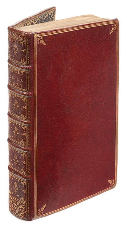 Paris, Josse et Delespine, 1737. In-8 (185 x 115 mm ), 1 f. n. ch., 554 pp., 6 ff. n. ch. (table et approbations). Maroquin rouge doublé de maroquin bleu nuit, plats encadrés d’un triple filet doré et de décors dorés, dos à 5 nerfs, caissons aux décors dorés, tranches et tête dorés, traces de mouillure en marge supérieure sur une partie du volume (reliure d'époque).
