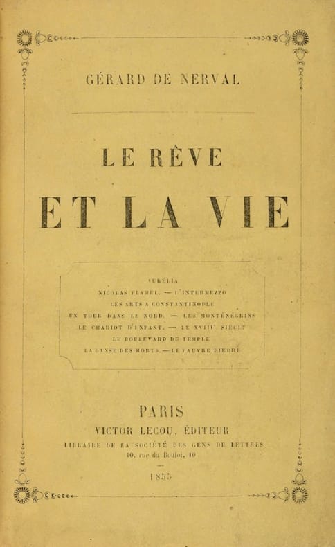Édition originale d'Aurélia, que beaucoup considèrent comme le chef d'œuvre de Nerval (Claude Pichois et Michel Brix, Dictionnaire Nerval, pp. 43-46 et 412). Donné quelques mois après la mort de l'écrivain, ce recueil “assez rare et fort recherché” (Clouzot) fut préparé par ses amis Arsène Houssaye et Théophile Gautier, lequel a signé un magnifique éloge qui tient lieu ici de préface. Très bel exemplaire.