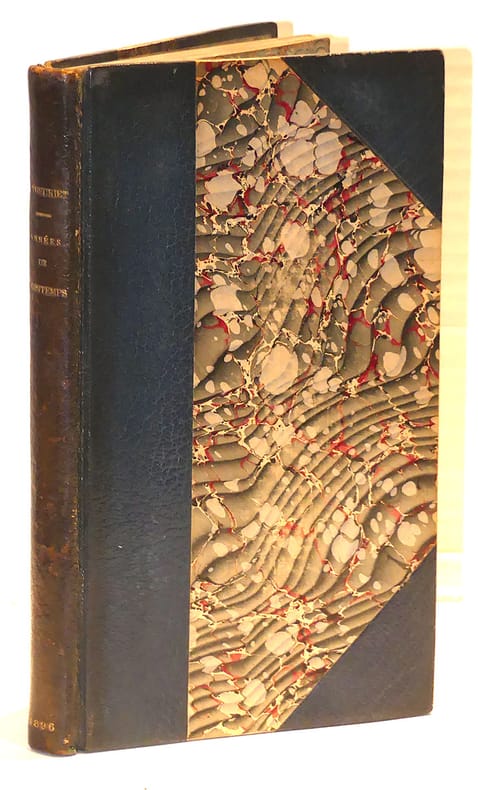 Édition originale, un des quelques exemplaires sur papier de Chine. Cet ouvrage, dont il a été tiré 50 exemplaires de luxe numérotés, est orné de compositions en noir de Maximilienne Guyon. Il fut repris en 1904 comme première partie des Souvenirs des vertes saisons. André Theuriet (Marly-le-Roi, 1833–Bourg-la-Reine, 1907) savait chanter les terroirs, les forêts, les petites villes bourgeoises avec une étonnante facilité à communier avec tous les pays où le menait sa profession. «Je ne sache pas de livres qui, plus souvent que ceux de M. Theuriet, aient ravivé en moi les chères impressions d’enfance», déclarait son confrère Jules Lemaître. Entré très tôt comme apprenti chez un relieur de Meaux, Victor Champs (1844-1912) apprit son métier avec passion. Après un traditionnel tour de France, il vint à Paris où il exerça successivement pour Parisot, de Haas et Fayot, avant de s’installer place Saint-André-des-Arts puis rue Gît-le-Cœur. Ses reliures sont particulièrement appréciées pour leur qualité d’exécution. Bon exemplaire en reliure de Champs. Fléty, 41.
