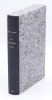 Sous étui bordé et sous chemise en demi-maroquin. Reliure maroquin bleu nuit à encadrement. Dos lisse avec titre doré et date en pied. Plats de papier kromekote aux tons bleus et verts serti d?un filet doré. Doublures et gardes de même kromekote que celui des plats. Couverture et dos conservés. Reliure signée L. GERARD.