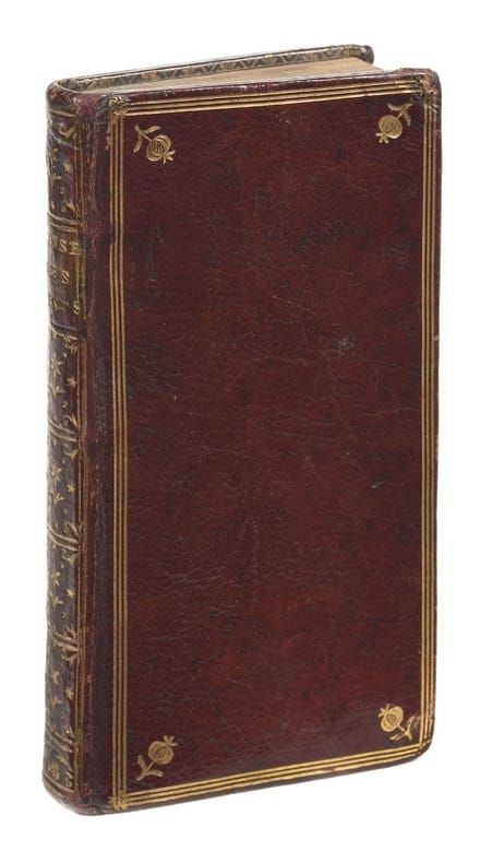 Paris, Hérissant, 1771. In-12 (126 x 62 mm), 248 pp., 2 ff. n. ch. Maroquin vieux rouge, triple filet doré encadrant les plats, fleurette aux angles, dos lisse orné de caissons de fleurons dorés, pièce de titre havane, roulette intérieure, tranches dorées (reliure de l’époque).