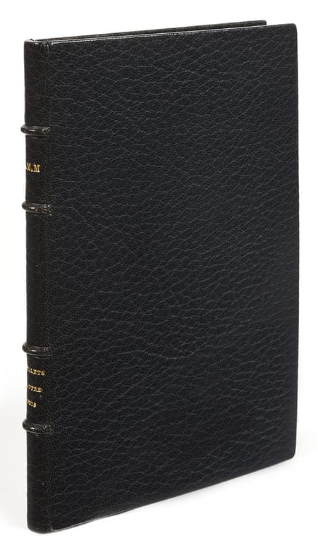 Paris, Renouard, 1916. In-12 (190 x 125 mm), 3 ff. bl., 3 ff. n. ch., 46 pp., 1 f. n. ch., 2 ff. bl. Maroquin noir, dos à quatre nerfs, auteur et titre en doré, doublures de maroquin prune, tranches dorées, non rogné, couvertures conservées.