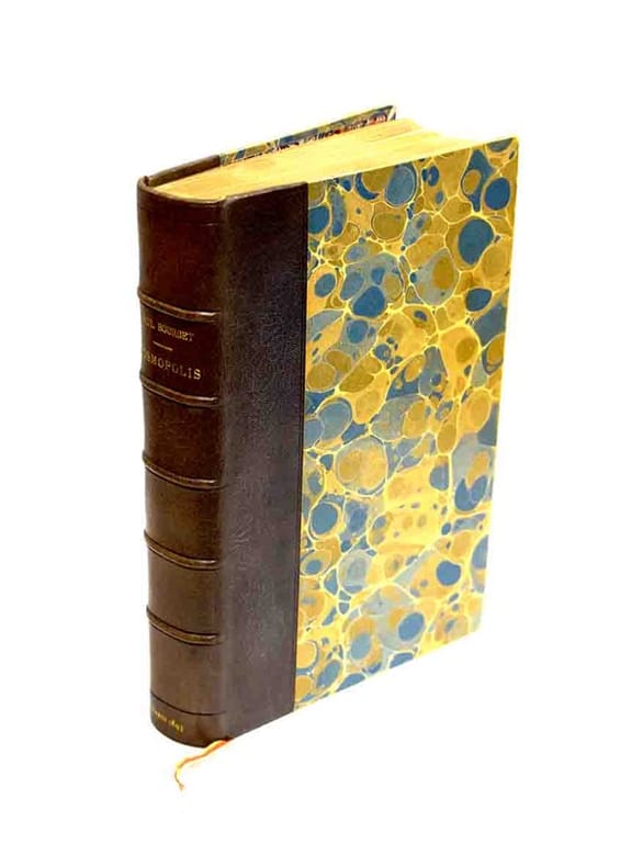 Cosmopolis, Roman Edition de Figaro, Illuststré d'Aquarelles par Duez, Jeanniot, Myrbach 230 x 170 mm, hard cover, reliure en cuir vert avec impression dorée sur le dos du livre 480 pg, en bon etat