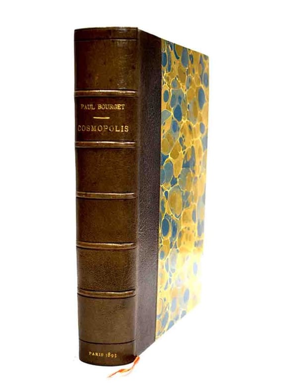 Paris. Alphonse Lemerre. 1892. 473 pp. In-8. Cartonné. Très bon état. 1 volume. Superbe édition reliée de Cosmopolis, roman issu de la plume de Paul Bourget, auteur français de la seconde moitié du XIXe siècle. Non seulement le lecteur constatera une certaine finesse de l'auteur concernant l'analyse des m?urs de la société de son temps, mais il saura également apprécier les illustrations parsemant le récit.