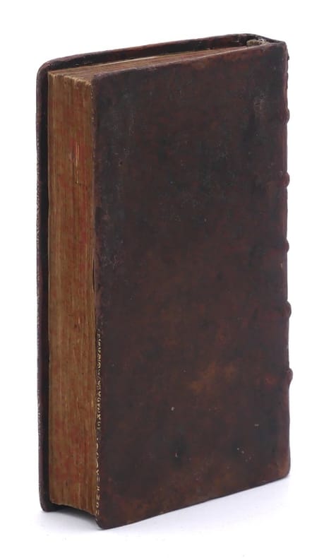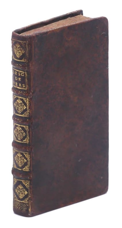 Paris, 1674. Trois ouvrages en un volume in-12 (141 x 78 mm), 102 pp.; 80 pp.; 114 pp., 1 f. n. ch. Veau brun, dos à nerfs orné de caissons de fleurons dorés, titre doré, tranches mouchetées, mouillure dans la marge inférieure, habiles restaurations (reliure de l’époque).
