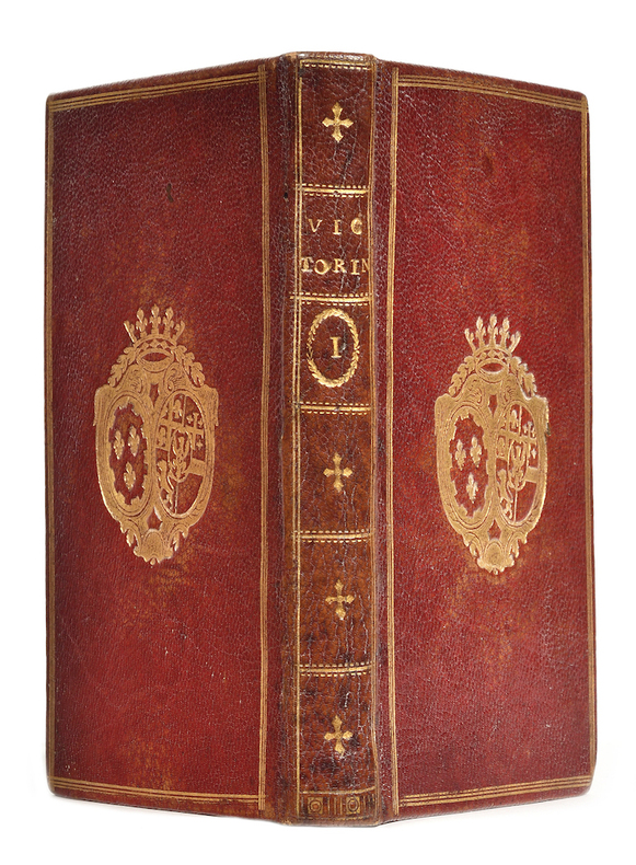 Paris, Guillot libraire de Monsieur, 1er mai 1789. 2 volumes in-12 (129 mm x 81 mm), 1 f. n. ch., 4 pp., 237 pp. ; 2 ff. n. ch., 211 pp. Maroquin rouge, plats encadrés d'un triple filet doré, et ornés, au centre, des armes de la comtesse d’Artois, dos lisse orné, titre et tomaison dorés, coupes et chasses ornées d’une roulette dorée, tranches dorées, petite fente d'un centimètre à la charnière du plat supérieur du second volume, quelques rousseurs éparses, mouillure ancienne visible aux deux premiers feuillets du premier volume et en tête aux quatre derniers feuillets du second volume (reliure de l’époque).