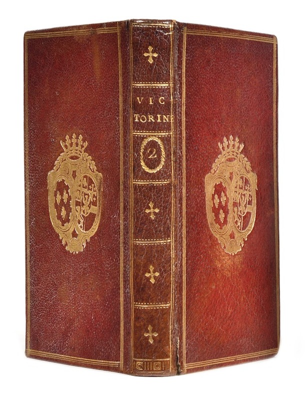 Édition originale, dédiée à la comtesse d’Artois. Dans ce roman sentimental à succès, Jean-Claude Gorjy (Fontainebleau, 1753-Pinceloup, 1795) narre les malheurs d’une jeune orpheline qui, à force de difficultés et d’obstacles, parvient finalement au bonheur. L’ouvrage est illustré de deux planches placées en frontispice et d'une vignette de titre répétée, dessinées et gravées en taille-douce par l’auteur. La vignette de titre est une allégorie de la dédicace. Elle représente un chérubin, un genou au sol, tendant un rouleau manuscrit en direction du buste sculpté représentant la comtesse d'Artois, dont le blason héraldique repose au pied. Exemplaire aux armes de la dédicataire. Marie-Thérèse de Savoie (Palais de Turin, 1756-Graz, 1805), fille du duc de Savoie et roi de Sardaigne Victor-Amédée III (1726-1796) et de l'infante Marie-Antoinette d'Espagne (1729-1785), épousa en 1773 Charles-Philippe de France, comte d'Artois, petit-fils de Louis XV et futurCharles X. Membre de la famille royale de France par son statut de «comtesse d’Artois», Marie-Thérèse fut aussi la mère des derniers héritiers directs de la maison de Bourbon puisqu'une génération après le rameau direct s’éteint. Précieux exemplaire en maroquin aux armes de la comtesse d’Artois. OHR, pl. 2551.