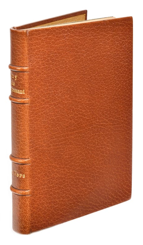 Édition originale du premier véritable livre de Maupassant. Il est dédié “à Gustave Flaubert, à l’illustre et paternel ami que j’aime de toute ma tendresse, à l’irréprochable maître que j’admire avant tous”. Un des 10 exemplaires de tête sur papier de Hollande, “qui sont de la plus grande rareté” (Carteret). Après l’Histoire du vieux temps, une comédie en acte, et l’ouvrage collectif Les Soirées de Medan, ce recueil de vers reste une tentative unique dans l’œuvre de Maupassant. Il réunit une vingtaine de poèmes dont une partie avait paru en revue. L’écrivain devait, cette même année, révéler ses talents de conteur avec Boule de Suif. L’ouvrage est intéressant en tant que tentative hardie d’introduire le naturalisme dans le discours poétique, avec l’âpre volonté de scandaliser les esprits timorés et les conservateurs de tous genres. Très bel exemplaire en maroquin doublé de Marius Michel. Vicaire, Manuel…, V, col. 605. Carteret, Le Trésor…, II, p. 106. Talvart & Place, Bibliographie des auteurs…, XIII, p. 248.