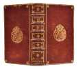 Paris, Jacques Collombat, 1728. Petit in-12 (139 x 80 mm), 10 ff. n. ch., 506 pp. mal ch. 502 (pagination 139-142 répétée), 1 f. n. ch. Maroquin vieux rouge, filet doré en encadrement sur les plats, petite fleur de lys aux angles, armes au centre, dos à nerfs orné de caissons fleurdelisés, titre doré, roulette dorée sur les coupes et sur les chasses, tranches dorées, légers frottements aux coiffes et aux coins, une piqûre de ver au dos, mouillure dans la marge supérieure de quelques feuillets (reliure de l’époque).