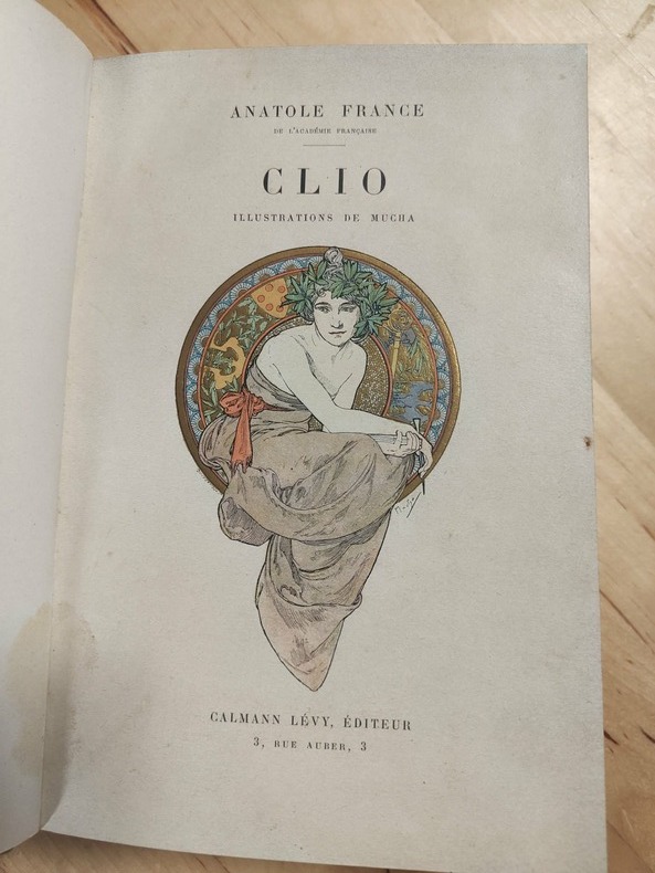 Parsis Calmann- Lévy 1900, in-8, (3)-188 pages-(2), 13 compositions en couleurs de Mucha dont 7 hors-texte et une pour le plat supérieur de la couverture rehaussée or.Demi maroquinjaune paille à petit grains, plats de la couverture conservés. Déchirure sans manque dans la marge intérieure d'une planche et au feuillet des pages (LVII)-(800 gr.)