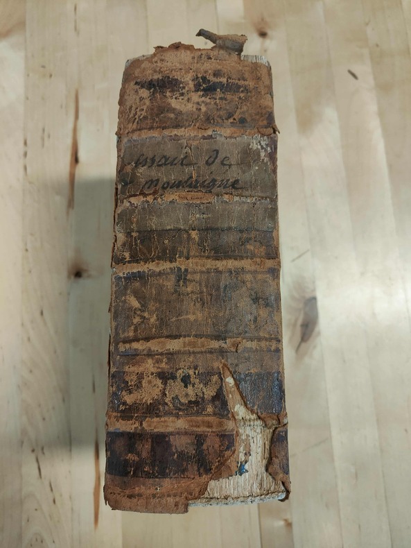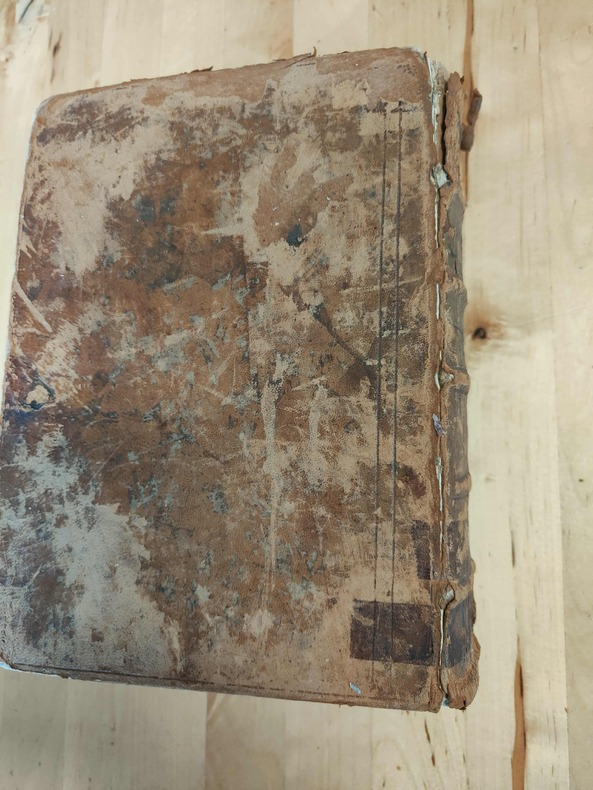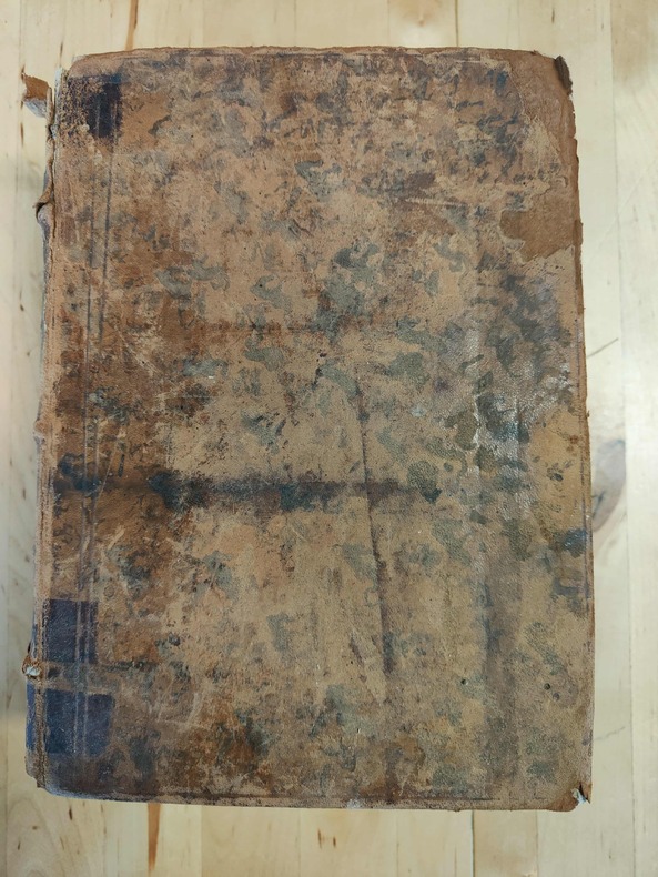Paris chez Pierre Rocolet 1625, fort et grand in-8 (24 X1 8 X9 cm), (26 feuillets n. chiffrés)-1039 pages-(1 page blanche)(1 feuillet: L'autheur au lecteur)-101 pages. Basane ancienne janséniste usagée, perte de cuir au dos, forte usure des coins et coupes, mors fendus,plats frottés,ex. court de marges; manque la première page de garde.Le papier est un peu jauni, des mots ou des phrases ont été masqués avec une encre ancienne sur plusieurs feuillets. Signature manuscrite de J. Fringan sur la page de titre.. (LXI).-(2000 gr.)