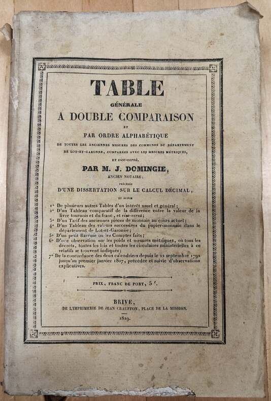 Brive de l'imprimerie de Jean Crauffon 1829, in-8, 152 pages. Broché; couverture délavée.