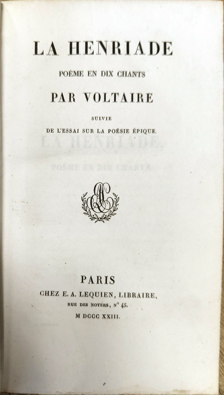 Agréable reliure pour cette fable historique sous forme de poème maintes fois rééditée. Édition préfacée par le roi de Prusse et par Marmontel, avec une lettre de M. Cocchi, et une "Histoire abrégée du poème de la henriade".