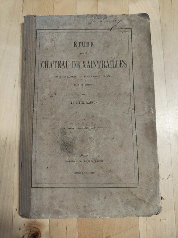 Agen imprimerie de Prosper Noubel janvier 1874, in-8, 124 pages. Vue du château gravé à l'E-F en frontispice, et un plan du château remplié in-fine. Broché, dos renforcé au papier Kraft, forte mouillure et papier jauni. Nom inscrit sur la couverture et sur la page de titre.(XC)-(310 gr.)