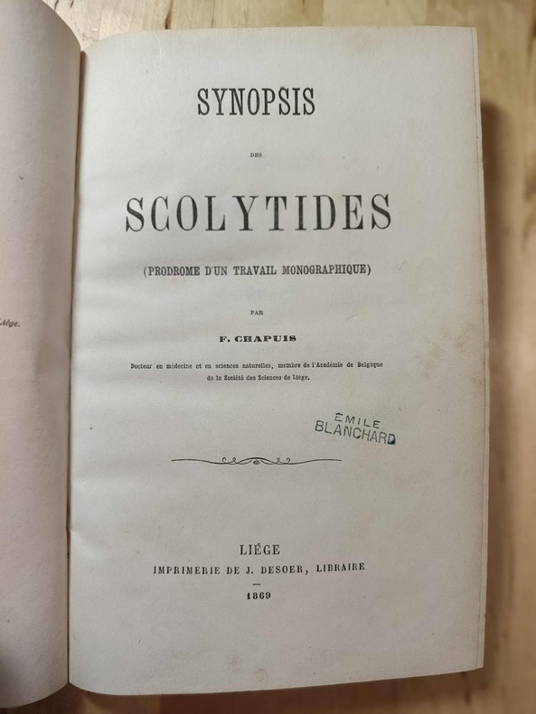liège imprimerie de J. Desoer 1869, plaquette in-8 de 61 pages. Demi veau cerise époque, dos lisse orné.Tampon deEmile Blanchard su la page de titre. (CXXI)