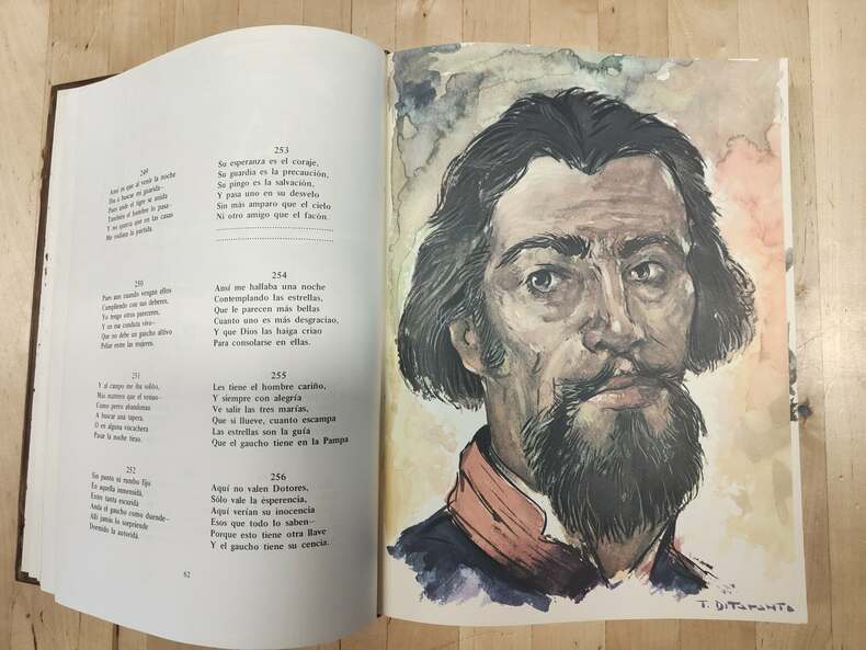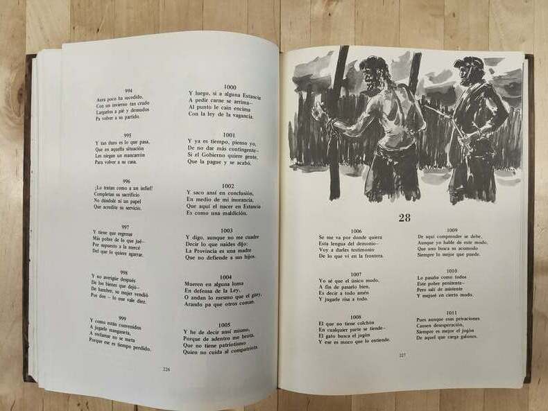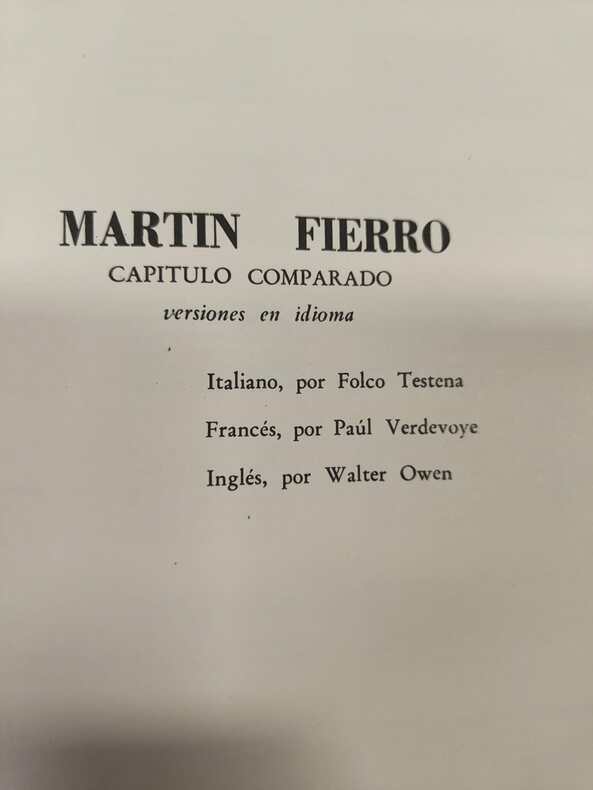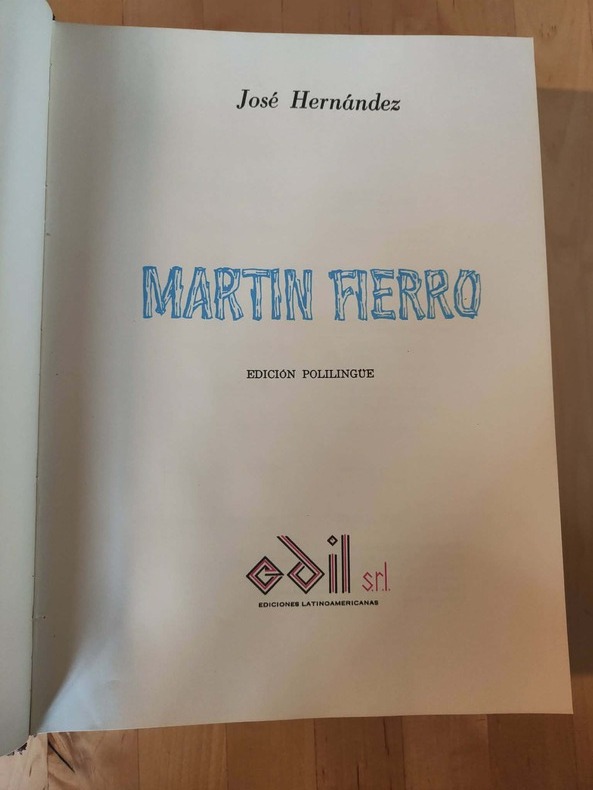 Comme indiqué, cet imposant ouvrage comporte des traductions (italien, français et anglais). Cette oeuvre est considérée comme exemplaire du genre gaucho, on la doit au poète argentin José Hernández qui écrivit la première partie en 1872, la seconde en 1879.