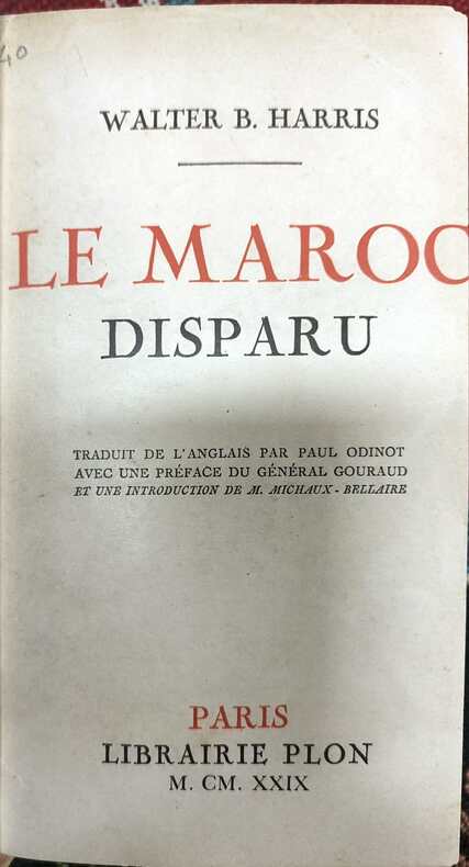 Plon. 1929. In-12. Broché. Etat d'usage, Plats abîmés, Dos abîmé, Papier jauni. 295 pages. Ex-libris en pages de garde et de faux-titre. Couverture partiellement désolidarisée, déchirures. Rousseurs. Dos partiellement manquant. 2ème plat désolidarisé.. . . . Classification Dewey : 964-Maroc