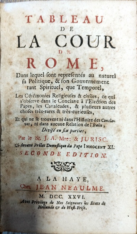 Jean Aymon, ministre protestant né à romans, célèbre pour ses démélés avec l'administration de la Bibliothèque Royale. Retiré en Hollande, il écrivit divers ouvrages théologiques et historiques dont ce "Tableau de la cour de Rome."