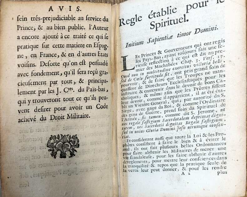 A Mastricht chez Lambert Bertus 1721, in-12, titre-(2 ff. d'avis)-(il semble manquer 1 ff.?)-397 pages-(27 pages de table). Veau époque usagé , les garde intérieures manquent, petite mouillure marginale. (CXXIII)-(400 gr.)