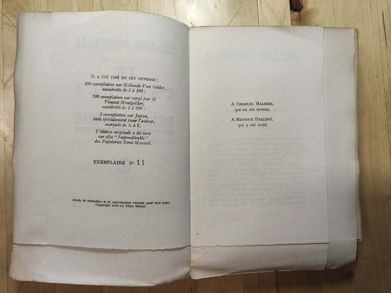Un des 100 exemplaires sur Hollande Van Gelder numérotés (n° 81), 1 vol. in-12 reliure demi-chagrin maroquiné à coins noir, dos à 4 nerfs dorés, tête dorée, couvertures et dos conservés, Albin Michel, Paris, 1928, 318 pp. et 1 f.