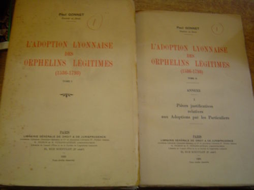 (2 tomes) Librairie de Droit et de Jurisprudence 1935 Format : 25/16cm, 219 Pages, -T. 1 : Texte. T.II : Annexe. I. Pièces justificatives relatives aux adoptions par les particuliers.