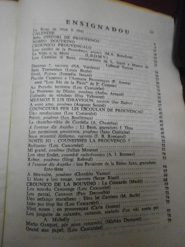 Almanach où l'on retrouve les grands noms des écrivains provençaux. Les textes d'écrivains sont tous en provençal.