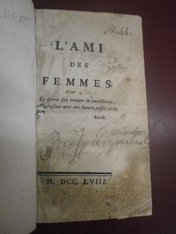 Seconde édition après la première publiée à Paris sous l'adresse fictive de Londres la même année. Rare. Neuf lettres de Rousseau, (six à Hume avec les réponses de ce dernier, une à Clairaut, une à l'auteur du "Saint James Chronicle" et une au général Conway). A la fin se trouve la "Déclaration de d'Alembert aux éditeurs". Le second titre, "L'Ami des femmes" est de la plume de Pierre-Jospeh Boudier de Villemert auteur de nombreux ouvrages, clui qui nous intéresse, d'inspiration rousseauiste nous informe le Dictionnaire de Journalistes (1600-1789).