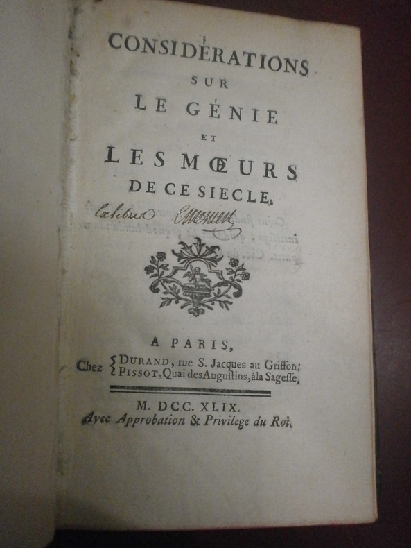 Chez Durand & Pissot, 1749. Format : 16/10. 242 pages. Bon état intérieur, reliure veau moucheté plats bon état une charnière fendue (voir photos) manque au dos pièce de titre coins & coiffes émoussés.