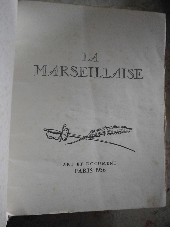 Art et document, Paris, 1936. Format : 25/19. 9 pages + un facsimilé de 4 pages de l'original de la Marseillaise de Rouget de Lisle. Peu courant. Plaquette rédigée par le Colonel de La Roque un des dirigeants du mouvement nationaliste : Les Croix de Feu. Défraîchi.