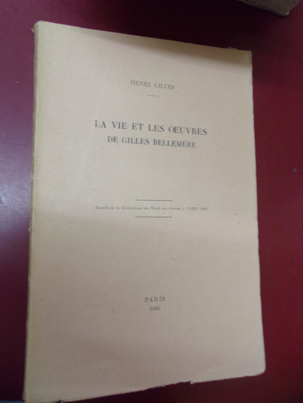 Bibliothèque de l'Ecole des Chartes, 1966. Format : 21/13. Pages : 56. Rare. Envoi au Professeur Ourliac. Bon état. Gilles de Bellemère, né en 1342 à Château-du-Loir et mort en 1407 est un prélat français du XIVᵉ siècle et du début du XVᵉ siècle. Il est un des canonistes les plus importants de son temps