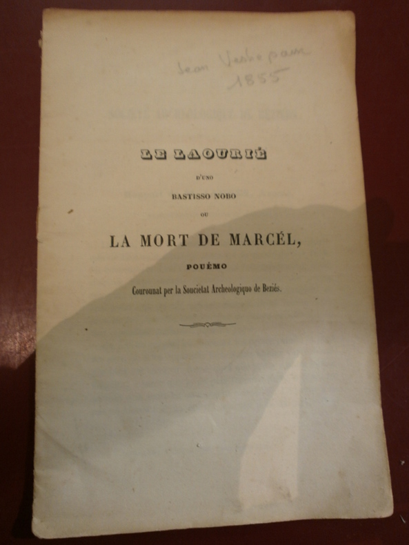 Pouèmo. 1855. Format : 20/13. Pages : 16. Texte du poème en Occitan, introduuction en français. Défraîchi sans reliure.