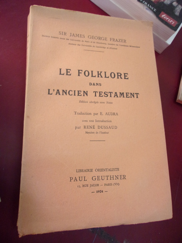 Préface : "Les neuf morceaux de ce recueil ont été rédigés à des époques bien différentes. Le plus ancien L'eau qui jaillit du rocher est sorti d'un essai d'interprétation d'une scène des bas-reliefs mithriaques publié en 1909 dans la Revue des Traditions Populaires. L'Anneau de Polycrate, le Renouvellement du feu sacré et Le thème du bâton sec qui reverdit ont paru en 1912, le premier dans la Revue d'Histoire des Religions, le deuxième dans la Revue des Traditions populaires et le troisième dans la Revue d'Histoire et de Littérature religieuses. C'est en 1913 que cette dernière revue a publié Les Origines liturgiques du miracle de l'eau changée en vin. D'autres études, d'autres préoccupations m'absorbèrent plusieurs années et ce n'est qu'en 1917 que parut dans la Revue archéologique mon travail sur Deux thèmes de la Passion et en 1919 dans la Revue des Traditions populaires l'article sur Le Tour de la Ville. Les deux importants essais consacrés à La Multiplication des pains et à La Marche sur les eaux ont été rédigés cette année 1922 et sont entièrement inédits. Les articles déjà publiés ont tous reçu des développements considérables qui en font des essais nouveaux."