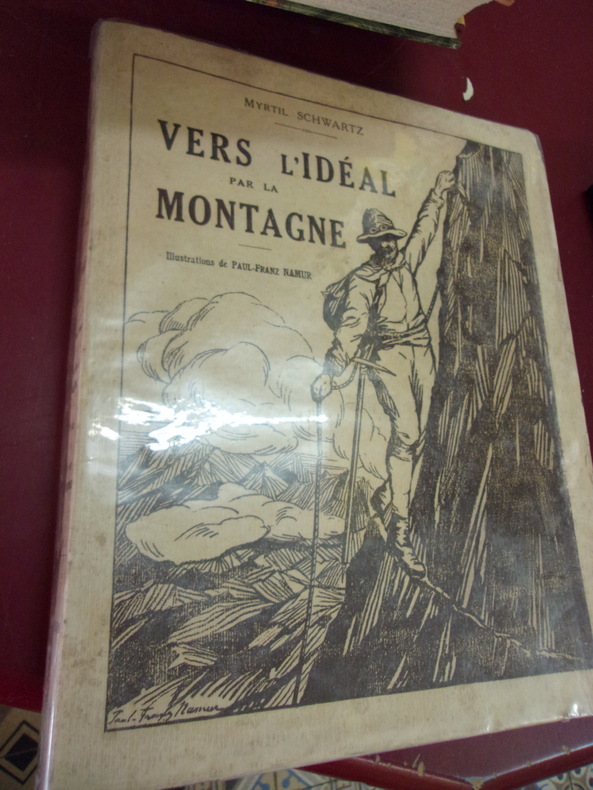 Escalades de Myrtil Schwartz, alpiniste français, décrites et illustrées dans les chapitres suivants: Le Mont-Rose / Le Mont Cervin / Le Mont Collon / Le Mont-Blanc / Saas-Fée (La Südlenzspitze, la traversée du Nadelgrat et le Nadelhorn; Le Strahlhorn et le Rimpfischhorn; L'Alphubel / Le Portjengrat) / La Sierra Nevada / Popocatepetl / Et un chapitre sur l'alpinisme, éducation morale.Un des 950 ex. de l'édition originale tirée au total à 1000 exemplaires.Bénézit VII/648 (Namur).